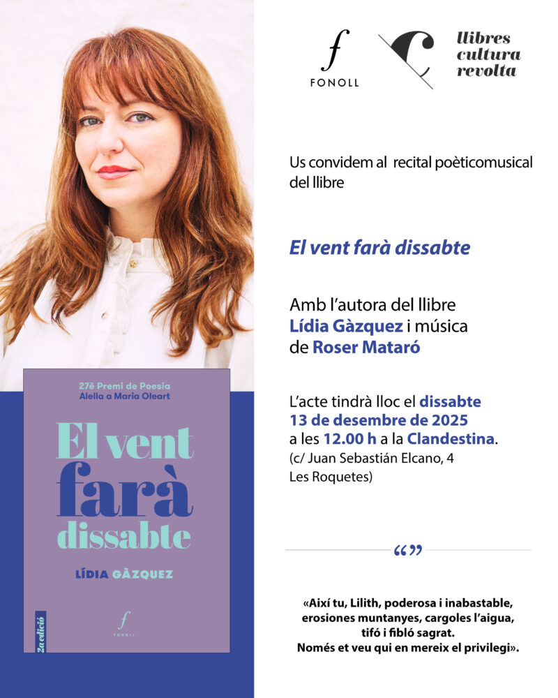13/12/2025 Presentació del poemari EL VENT FARÀ DISSABTE